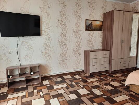 В квартире две изолированные комнаты, проходная кухня-гостиная: двух спальная кровать, три раскладных дивана (пять полноценных спальных мест), шкаф, два телевизора, два кондиционера, кухонный уголок, посуда, холодильник, газовая плита, микроволновая печь, стиральная машина, утюг, фен, wi-fi. Сан узел, душевая кабина. Горячая и холодная вода круглосуточно. Автономное отопление позволяет комфортно отдыхать и в холодное время года. При входе столик и стулья.