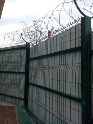 ООО "Кайман" предлагает от производителя заграждение: Колючая проволока СББ егоза 600 мм. Диаметр кольца егозы 600 мм, количество скоб 5, диметр проволоки сердечника 2,5 мм, ГОСТ 9850-72, рекомендуемая растяжка 10 м. При установке данное заграждение в натяжных струнах не нуждается. Заказывайте.